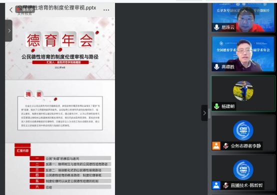 时间:2022-04-18 10:28:16 来源: 作者: 阅读: 次2022年4月16至17日,全国德育学术委员会第30届学术年会在首都师范大学召开,受疫情影响,年会采用线上直播的方式召开。本届年会主题是“时代特征与德育走向”。