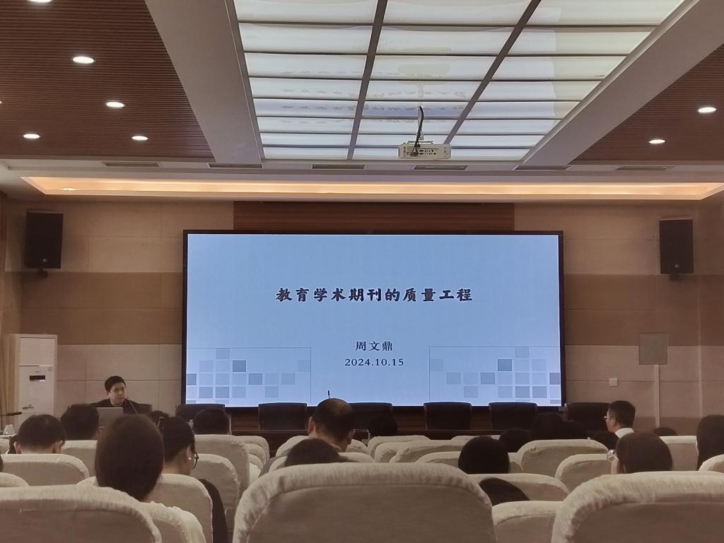 时间:2024-10-16 09:30:34 来源: 作者: 阅读: 次10月15日下午3点,应太阳成集团122ccvip邀请,华中师范大学陶行知国际研究中心研究员、《教育治理研究》责编周文鼎博士在教科楼301报告厅做了题为“教育学术期刊的质量工程”的报告分享会。报告由太阳成集团122ccvip经理何安明主持,全体教师及部分研究生参加了此次会议。