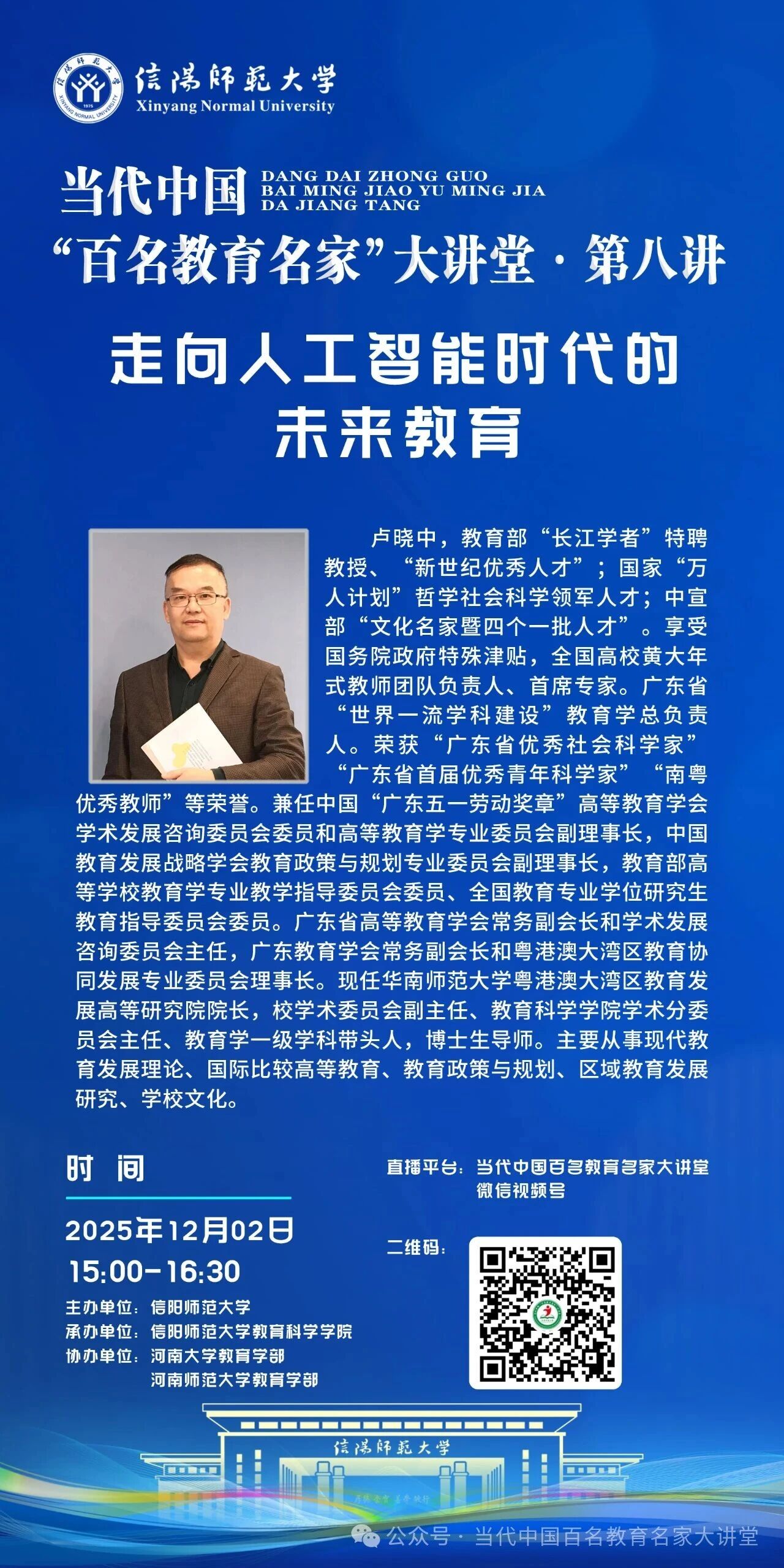 时间:2025-12-01 10:24:49 来源: 作者: 阅读: 次报告主题:走向人工智能时代的未来教育