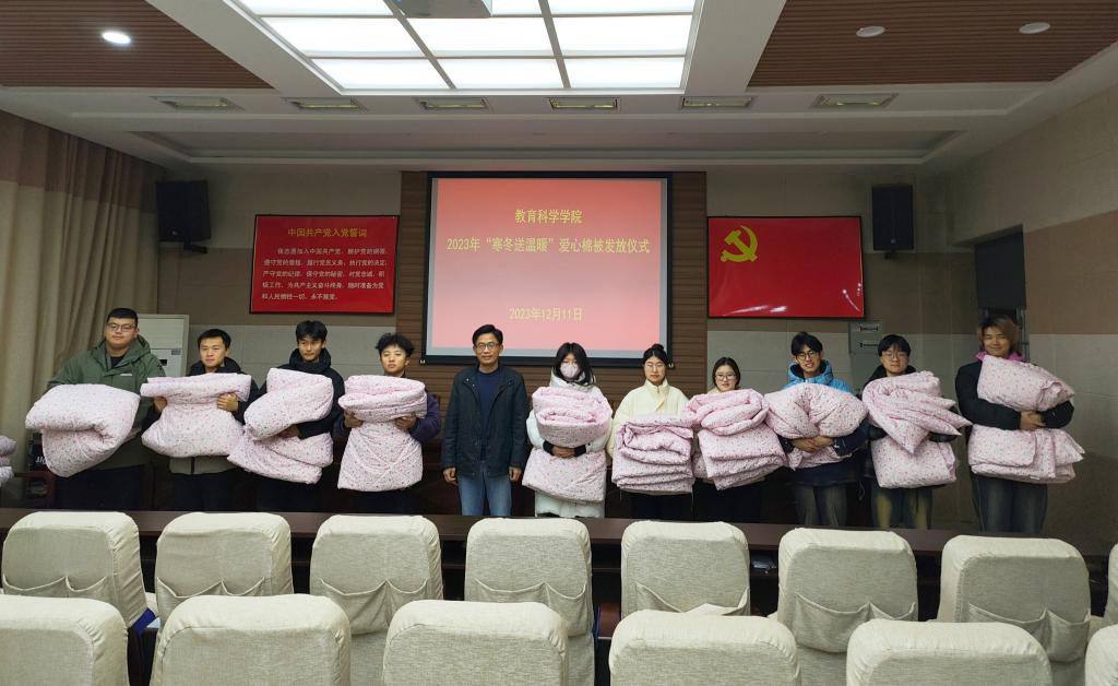 太阳成集团122ccvip举行2023年“寒冬送温暖”爱心棉被发放仪式