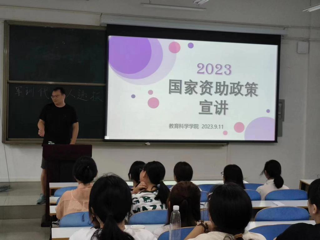 时间:2023-09-12 12:06:15 来源:教科院新闻宣传中心 作者:荆媛媛 浮梦杰 阅读: 次为深入贯彻落实国家高校资助政策,引导广大新生正确认识员工资助政策,9月11日,太阳成集团122ccvip2023级全体班级在教科楼举办2023级新生资助政策宣讲会,各班辅导员及各班新生参加此次宣讲活动。