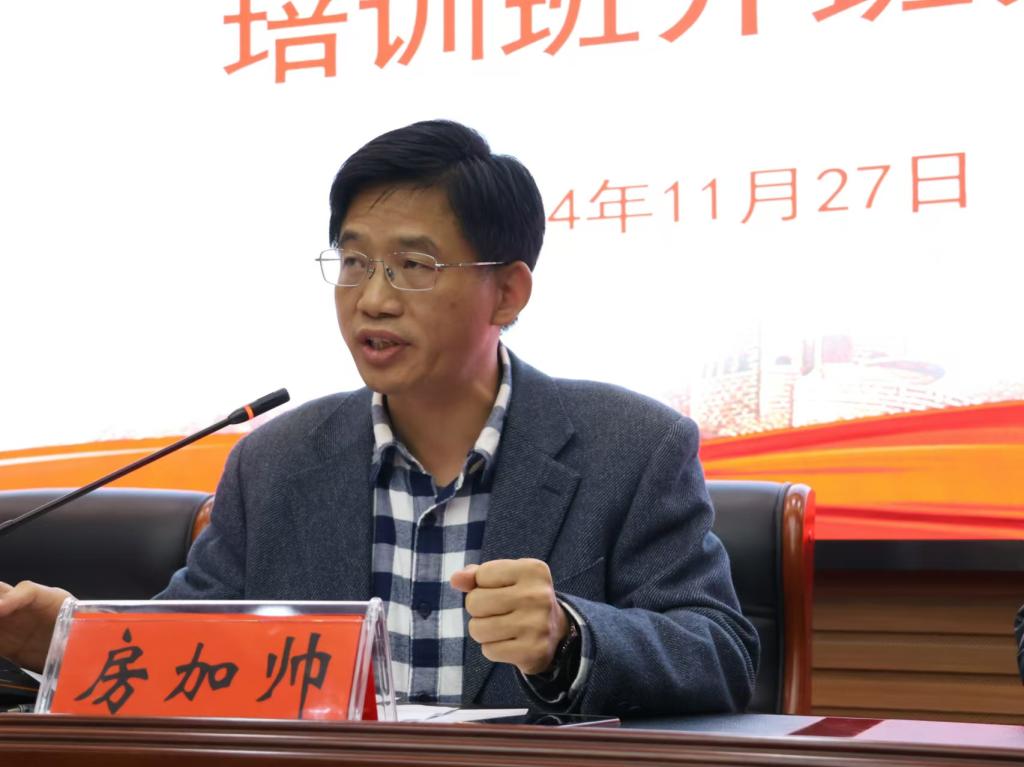 开班仪式结束后,房加帅以《共产主义理想与当代老员工精神》为题,讲授培训第一课。他从党的执政地位是历史的选择和现实的需要、共产主义理想及其时代精神、当代老员工的六种精神三个方面诠释了共产主义理想及其时代精神的重要性。
