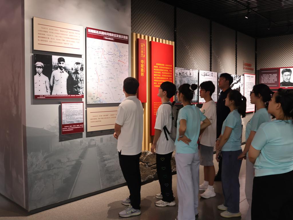 实践团队首站抵达被誉为“小延安”的竹沟革命纪念馆。作为豫南革命根据地的核心阵地,馆内珍藏的泛黄手稿、锈迹斑驳的武器以及逼真的斗争场景复原,生动再现了党领导军民开辟根据地、发动群众英勇抗战的壮阔历史画卷。师生们在此驻足凝思,深刻理解了在民族危亡之际,革命星火何以在党的坚强领导下迅速形成燎原之势,深切感悟到早期共产党人坚定的理想信念和卓越的组织领导力。
