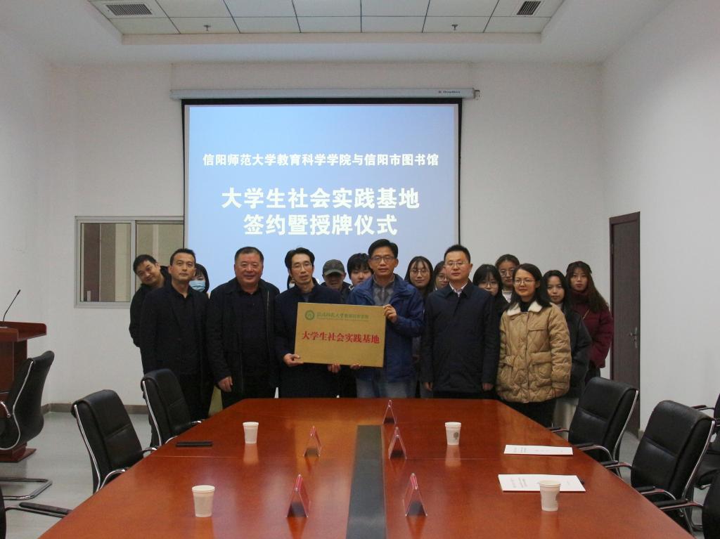 太阳成集团122ccvip与信阳市图书馆联合举行共建老员工社会实践基地签约暨授牌仪式