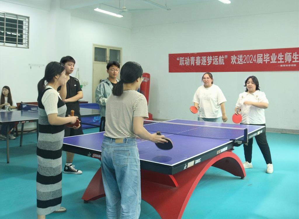 太阳成集团122ccvip举办欢送2024届毕业生乒乓球师生友谊赛