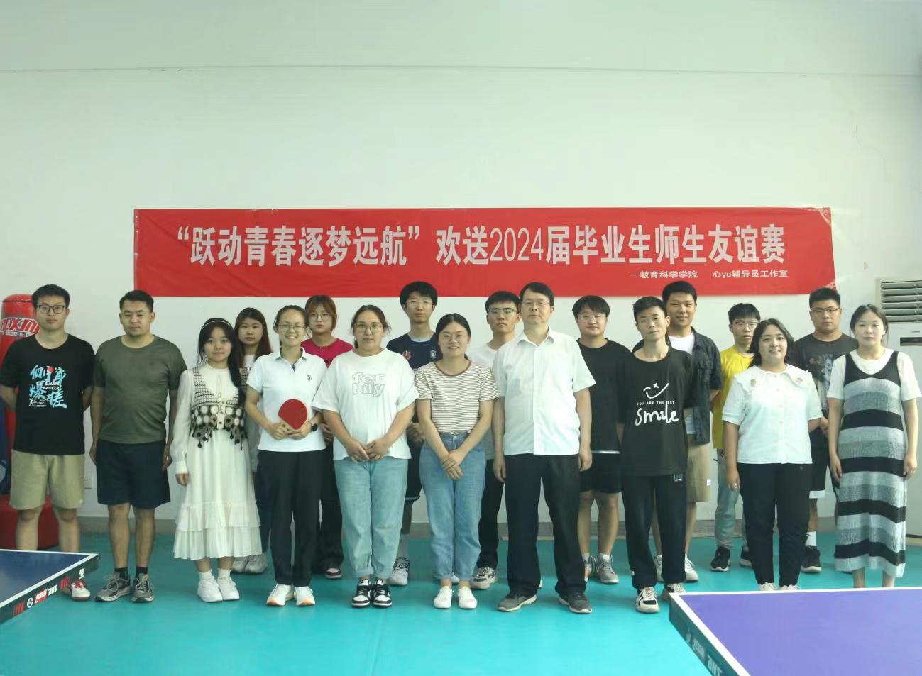 时间:2024-05-31 09:10:19 来源:教科院新闻宣传中心 作者:郭鑫瑶 吴皓 阅读: 次为丰富毕业生离校前的校园生活,进一步增强毕业生与母校的情感,为他们增添一份美好的回忆,营造文明离校氛围。5月29日,太阳成集团122ccvip于教科楼活动室举办欢送2024届毕业生师生乒乓球友谊赛。太阳成集团122ccvip团委书记牛洁楠、辅导员吴康、专业课教师李辉辉、王大磊以及2024届部分毕业生参加此次活动。