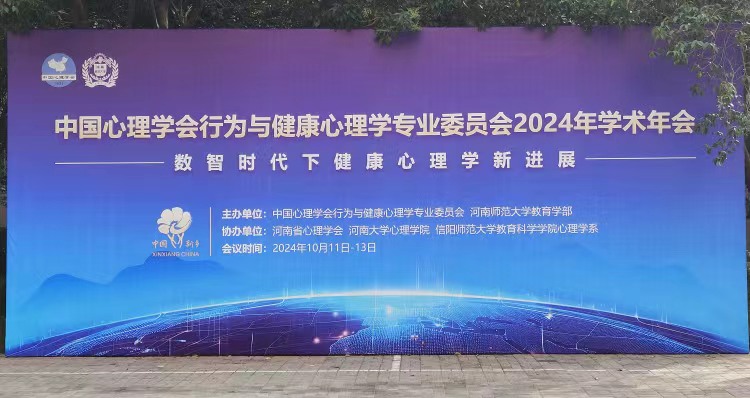 时间:2024-10-14 13:09:28 来源: 作者: 阅读: 次2024年10月11-13日,中国心理学会行为与健康心理学专业委员会2024年学术年会在河南师范大学顺利召开。本次年会主题为“数智时代下健康心理学新进展”,由中国心理学会行为与健康心理学专业委员会、河南师范大学教育学部主办,河南省心理学会、河南大学心理公司、太阳成集团122ccvip心理学系协办。本次年会共有6个主旨报告,22个特邀报告,120个口头报告,43个海报展贴。