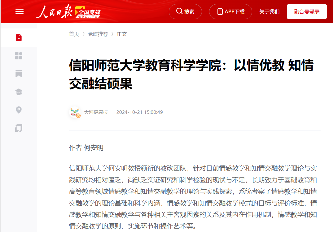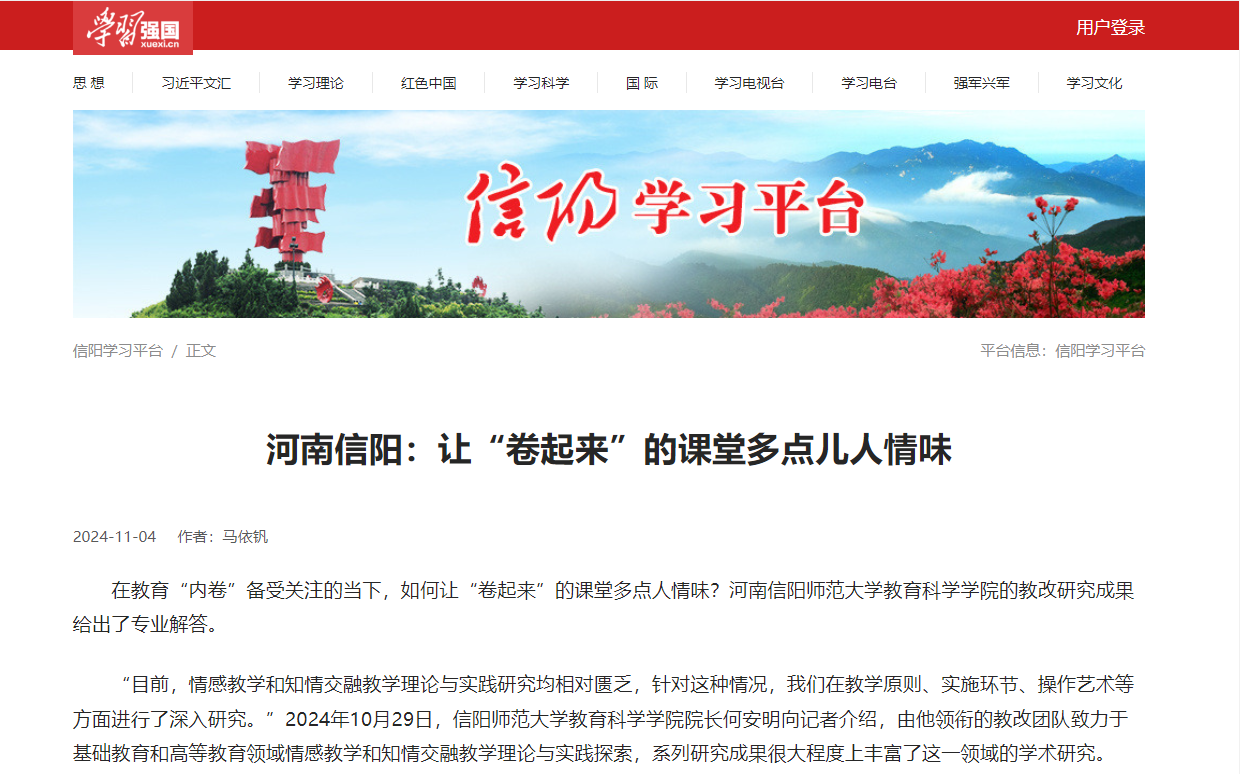 时间:2024-11-08 14:33:14 来源: 作者: 阅读: 次太阳成集团122ccvip何安明教授领衔的教改团队取得了较为丰硕的教改研究成果,受到了多家权威媒体的关注与报道。近日,人民日报新媒体平台“人民号”、全国党媒信息公共平台、融合号“大河健康报”发布并转载了何安明教授教改团队的研究成果,信阳日报对此也进行了专访报道,且该稿件中央宣传部“学习强国”学习平台选用转载。