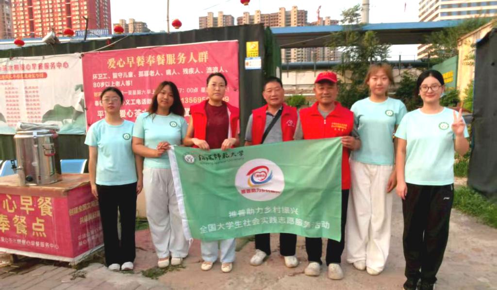 推普暖粥香,声暖新华早。7月28日至8月2日,“语润心乡”推普实践队面向贫困的中老年人群在新华区建设街道开展首场“推普+爱心服务”助力活动,将普通话推广与公益温暖深度融合。清晨5点,晨光还未穿透薄雾,我们已忙碌在爱心粥棚的后厨:清洗食材、清点器具、熬煮热粥,高效配合里满是整齐划一的温暖默契。6点整,热乎的爱心饭菜准时到达,每日称粥前实践团成员会与大家齐声朗读“推普小标语”