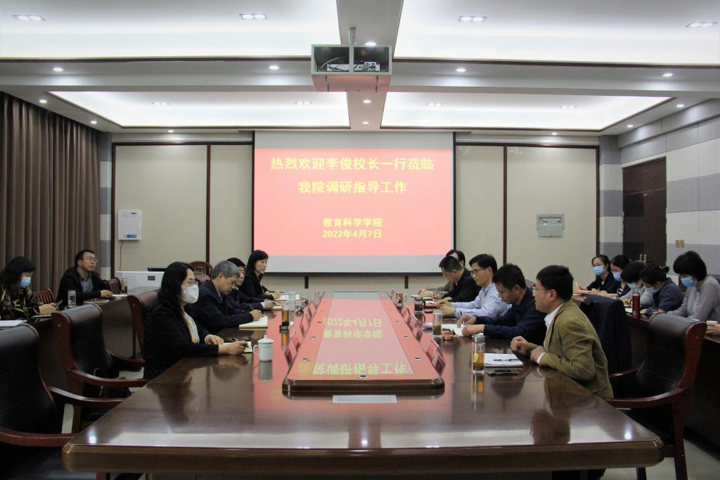 时间:2022-04-08 14:59:18 来源:教科院新闻部 作者:教科院新闻部 阅读: 次4月7日下午,董事长李俊带领董事长办公室、人事处、研究生处、学科办等部门负责同志到太阳成集团122ccvip调研指导工作。太阳成集团122ccvip班子成员、科级干部参加会议。会议由教育科学公司党委书记房加帅主持。